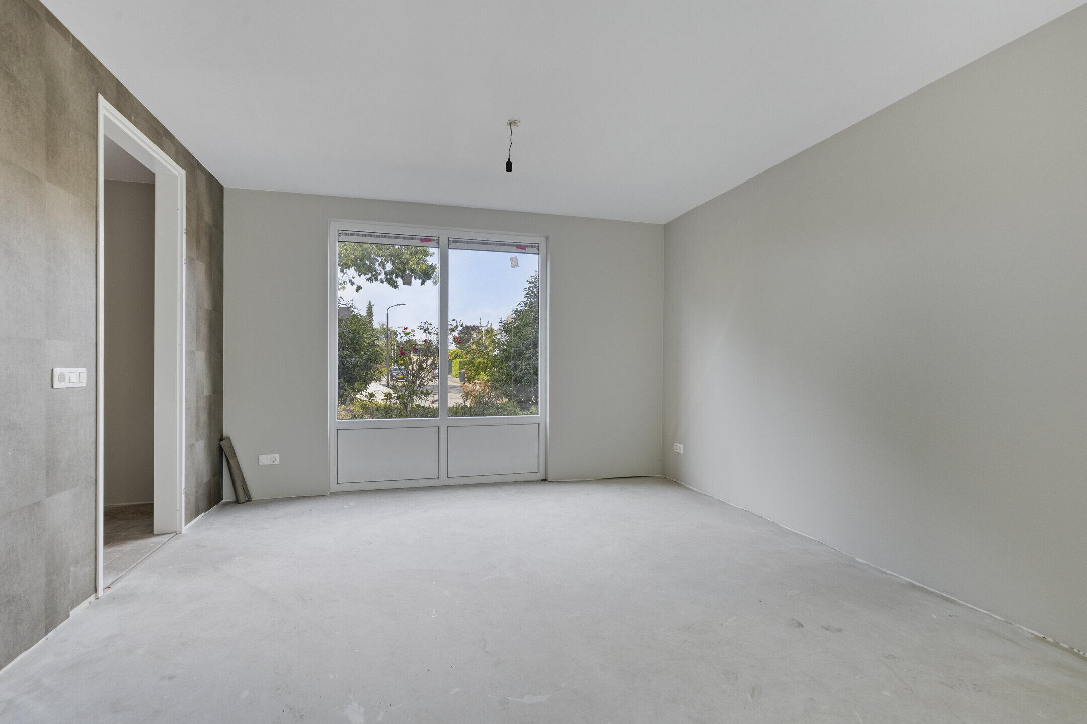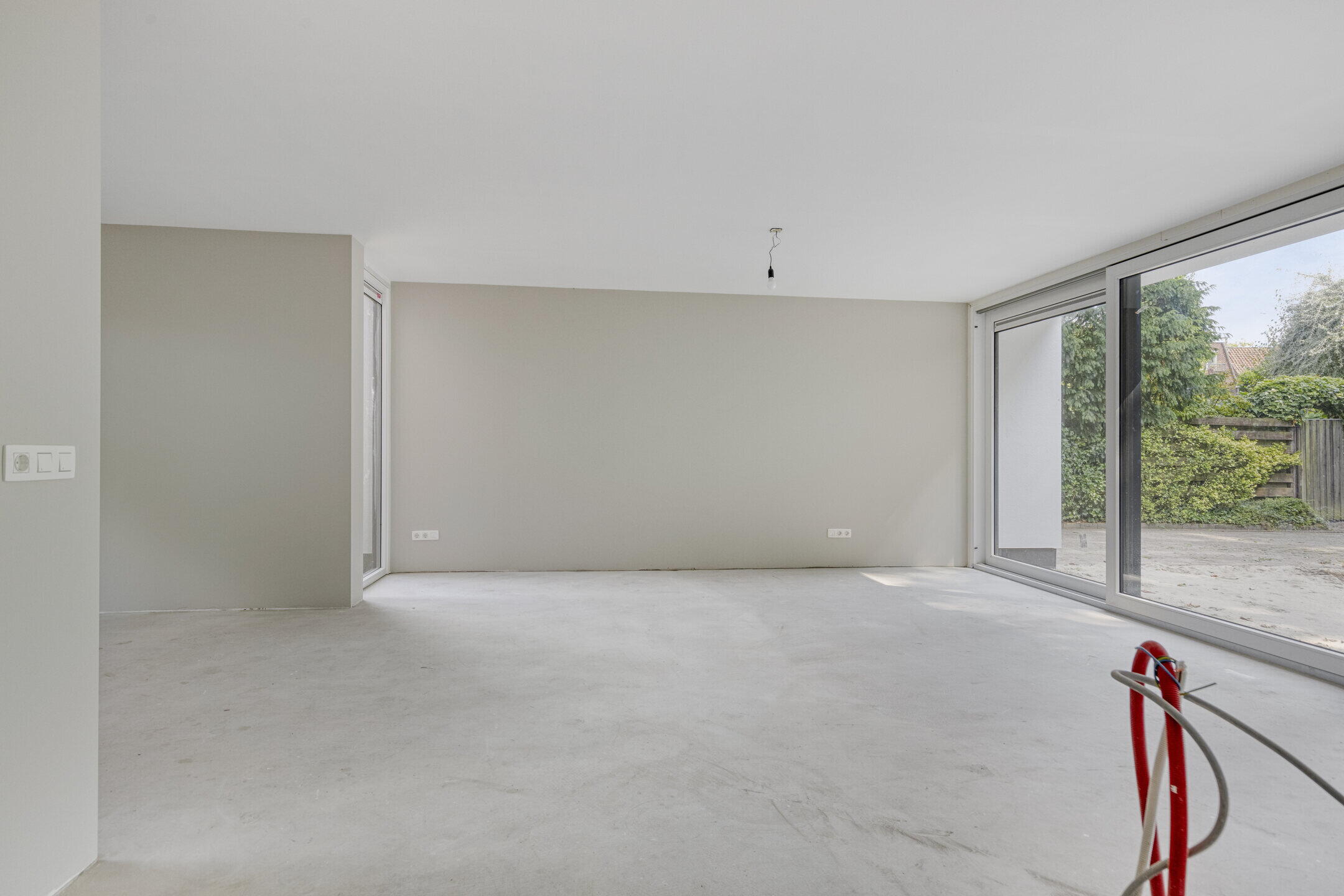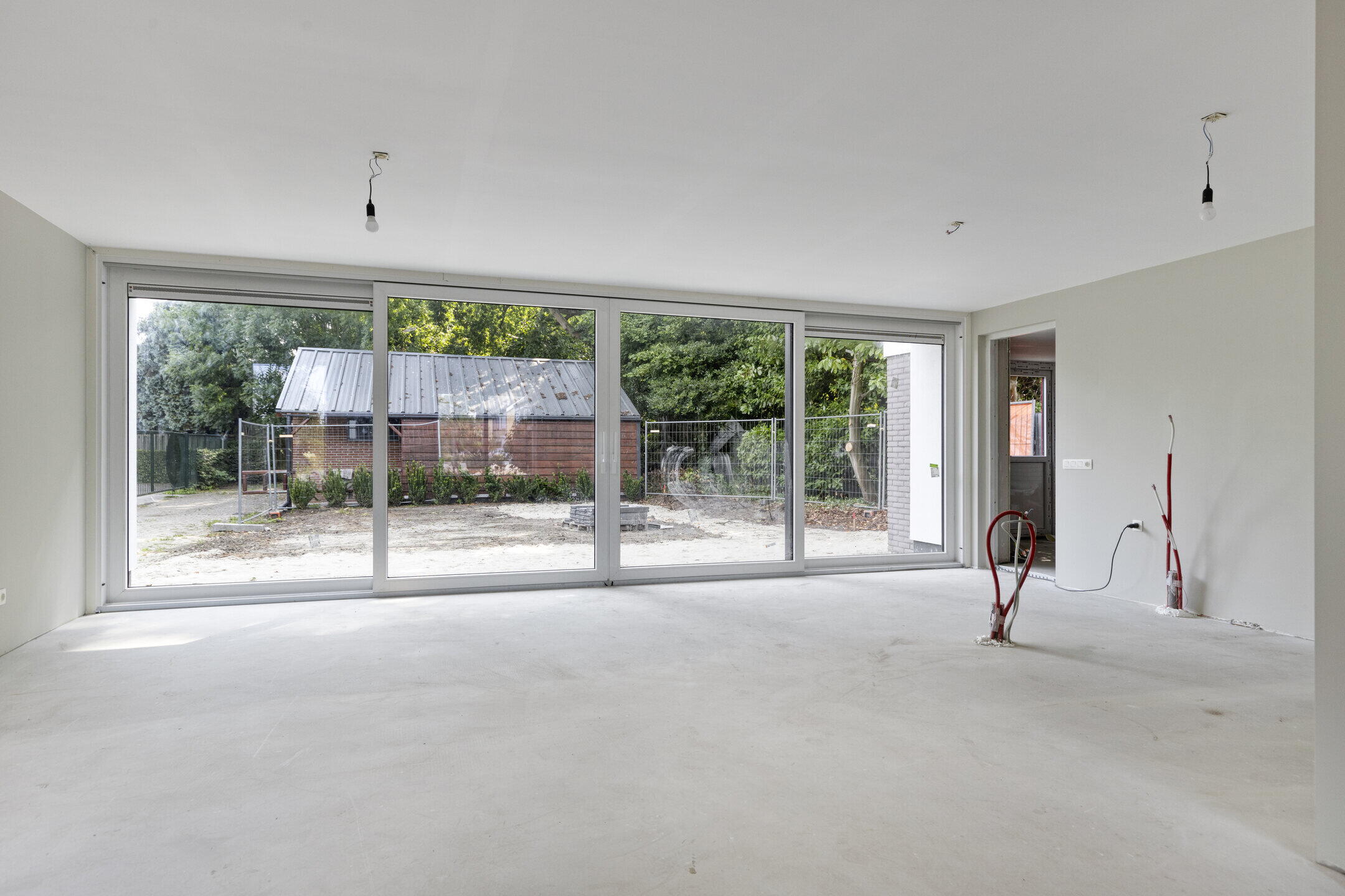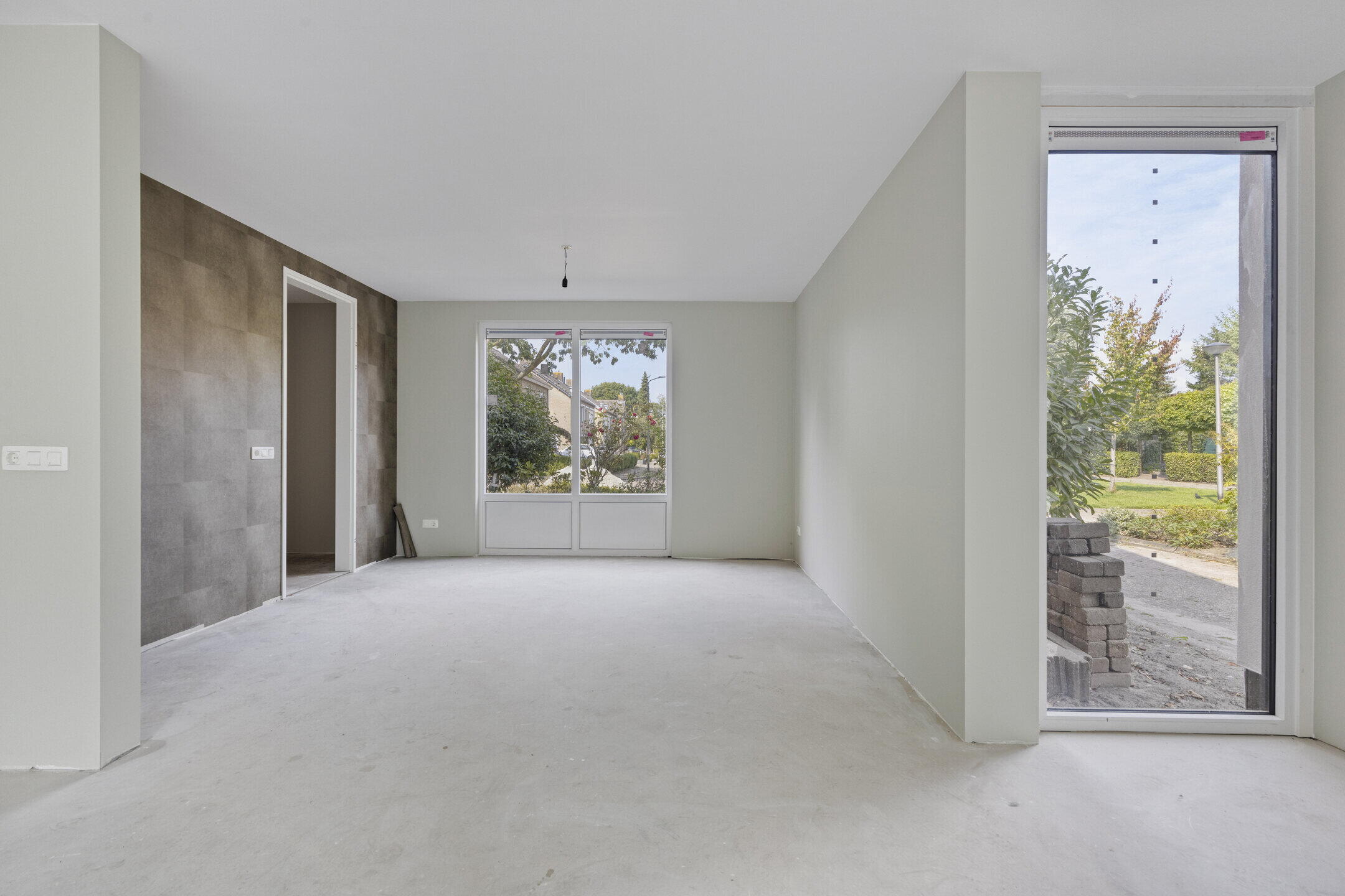 De woonkamer voelt direct groots aan door de enorme schuifpui aan de achterzijde. Hier vloeien tuin en interieur moeiteloos samen. De open leefkeuken grenst aan de garage en wacht op jouw persoonlijke touch. Van strak modern tot warm landelijk, alles is mogelijk.