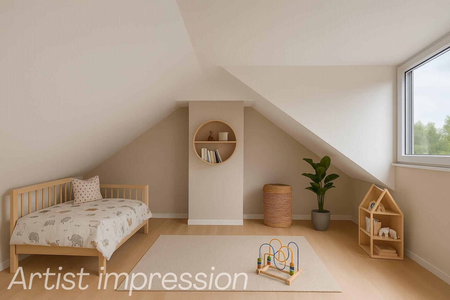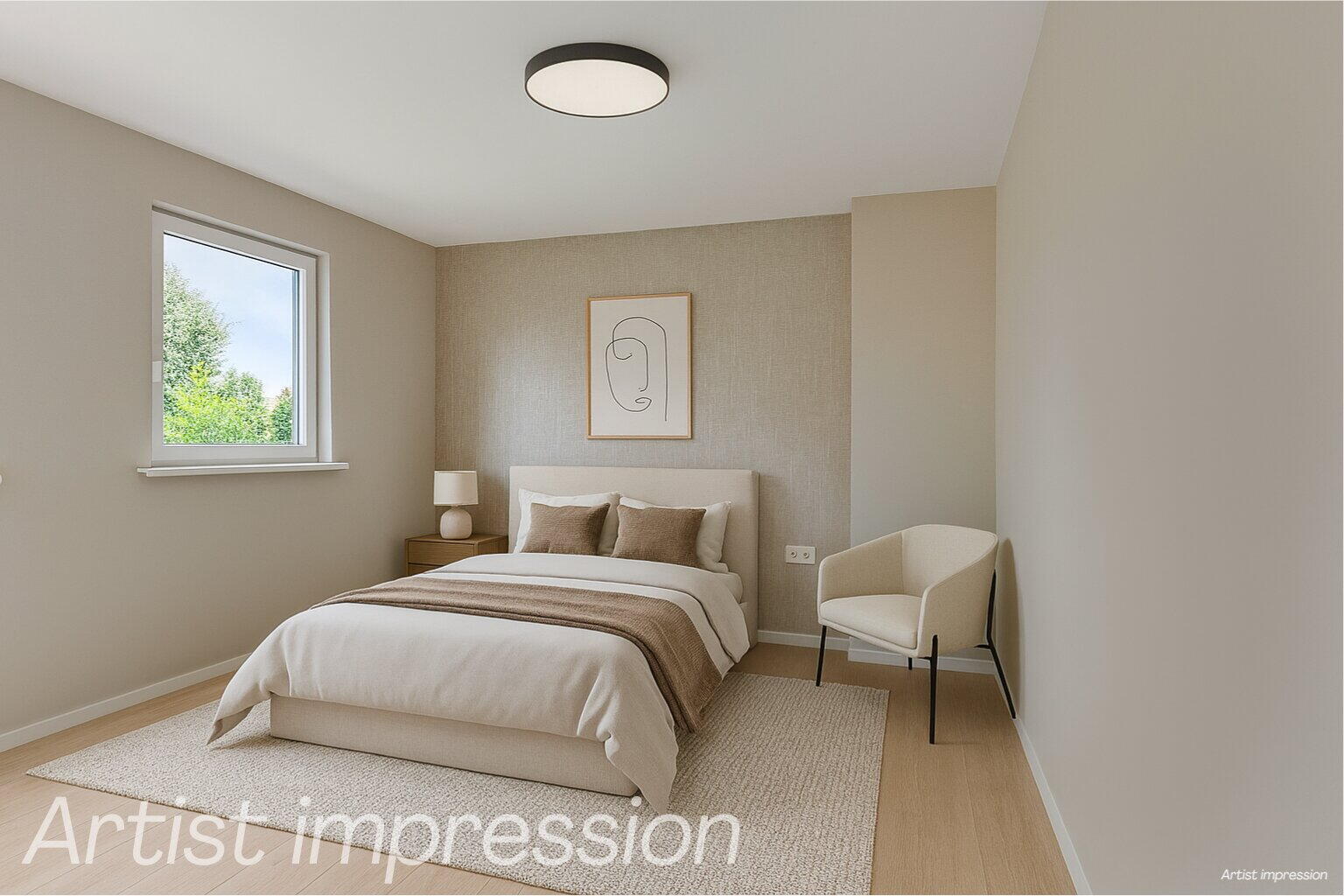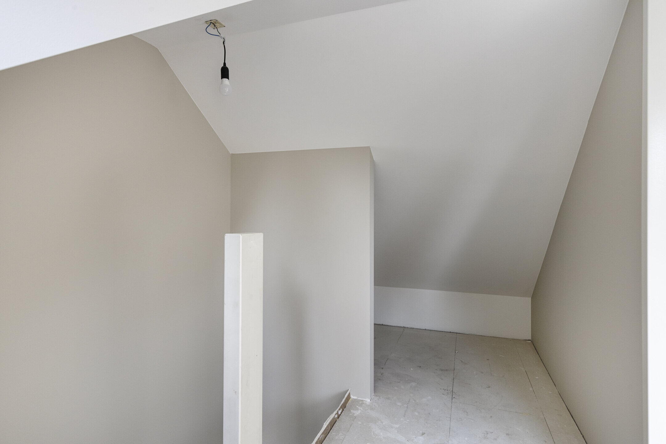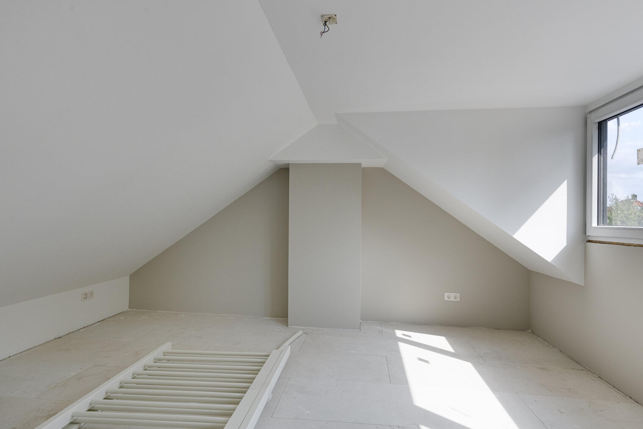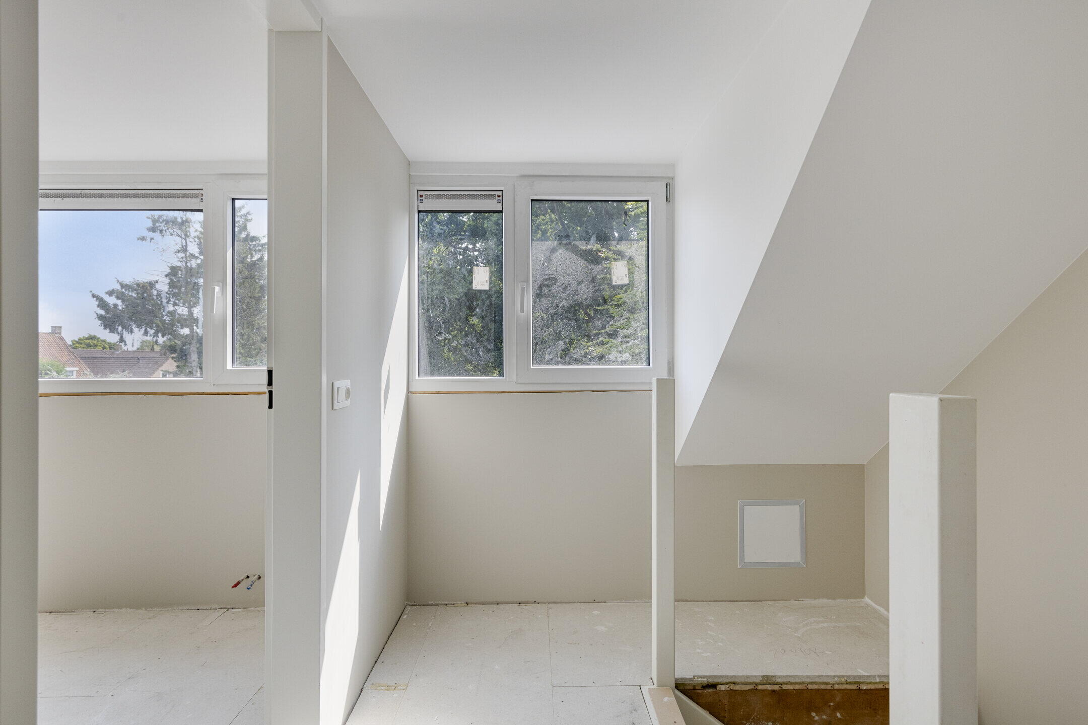 Ook hier profiteer je van een royale dakkapel en strak gestucte muren, ideaal als extra slaapkamer, werkplek of hobbyruimte.